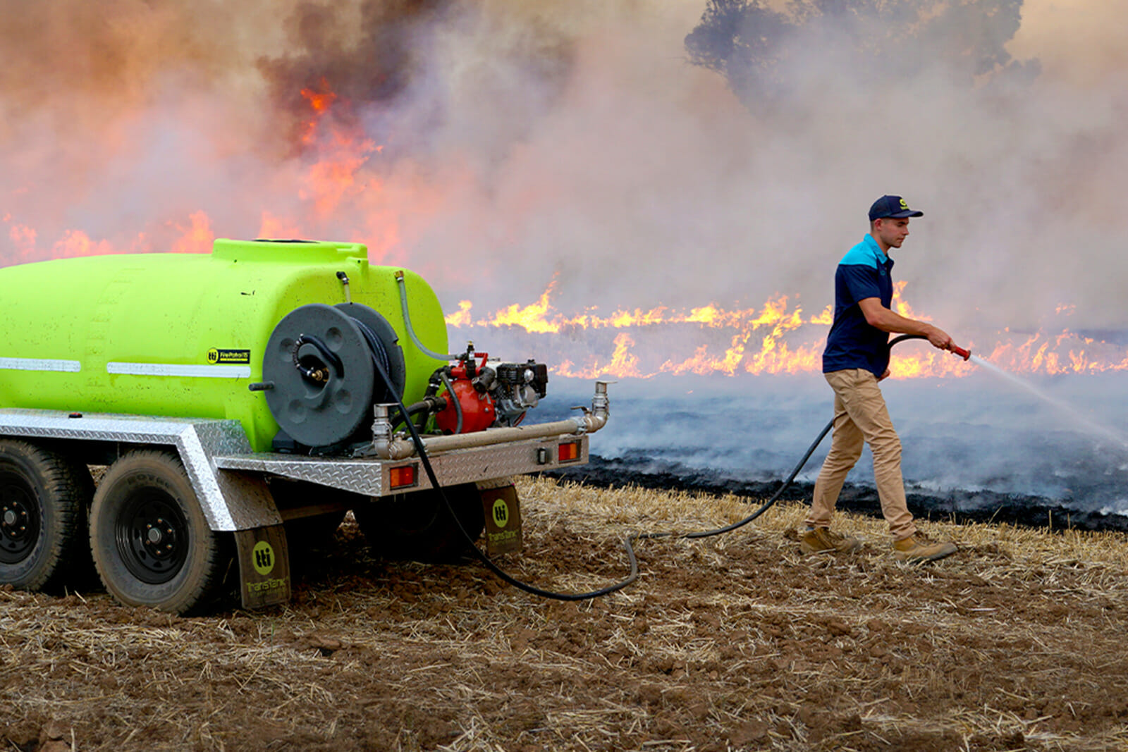 Our multi-purpose fire fighting trailers are used to combat many types of fires, including grass and brush fires, structural fires and small industrial fires. When it comes to industrial fires, you may want to consider researching industry-specific fire fighting trailers and equipment, such as mine-spec water trailers, which have been designed specifically to be used in mining operations for water cartage and fire control. Speak to one of our team today to find out more about what types of fires and industries our fire fighting trailer can be used in.