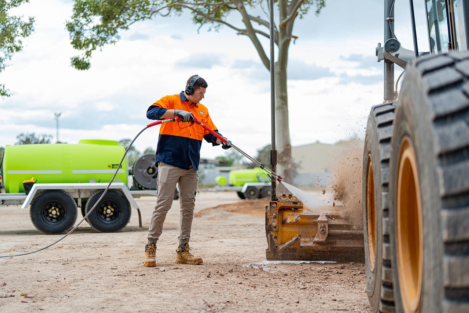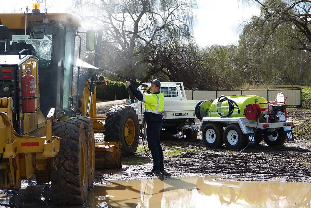 - Versatile: Equipped with powerful cold-wash pressure cleaners, our trailers are ready to tackle a wide range of cleaning tasks. For added versatility, consider upgrading to our firefighting pump option, which doubles for both washdown and dust suppression.