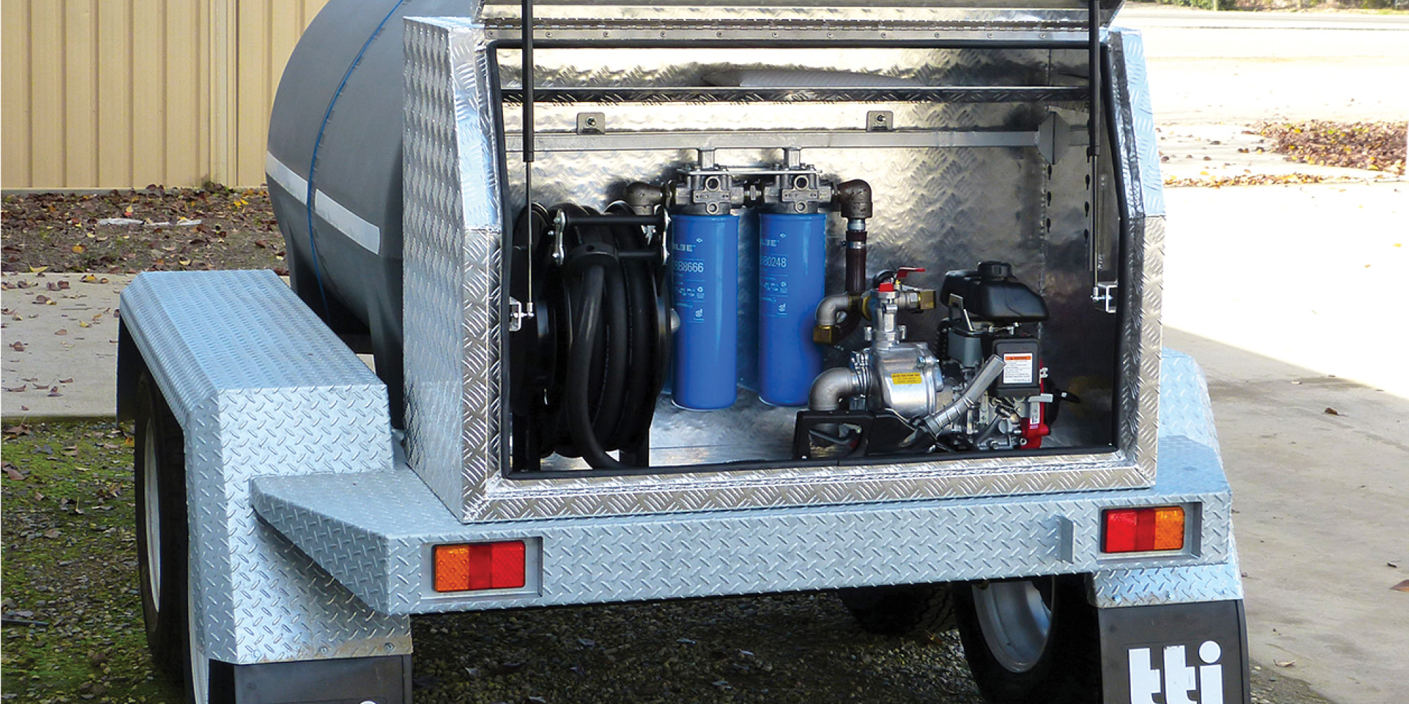 TTi’s fuel pods range from 100L to 1200L and can be fitted with high-flow 40, 50 or 60LPM pumps. Compact fuel pods are also available in slimline configurations to suit tighter spaces.