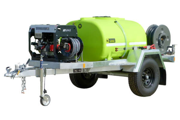 Electric start Honda petrol or Kohler diesel engines with JetWave Hornet pressure cleaner pumps.