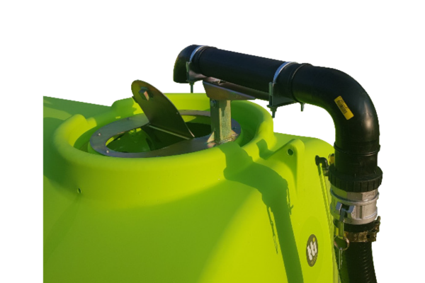 Easy tank filling from external water source or sucking polmer from IBC/drums into the tank