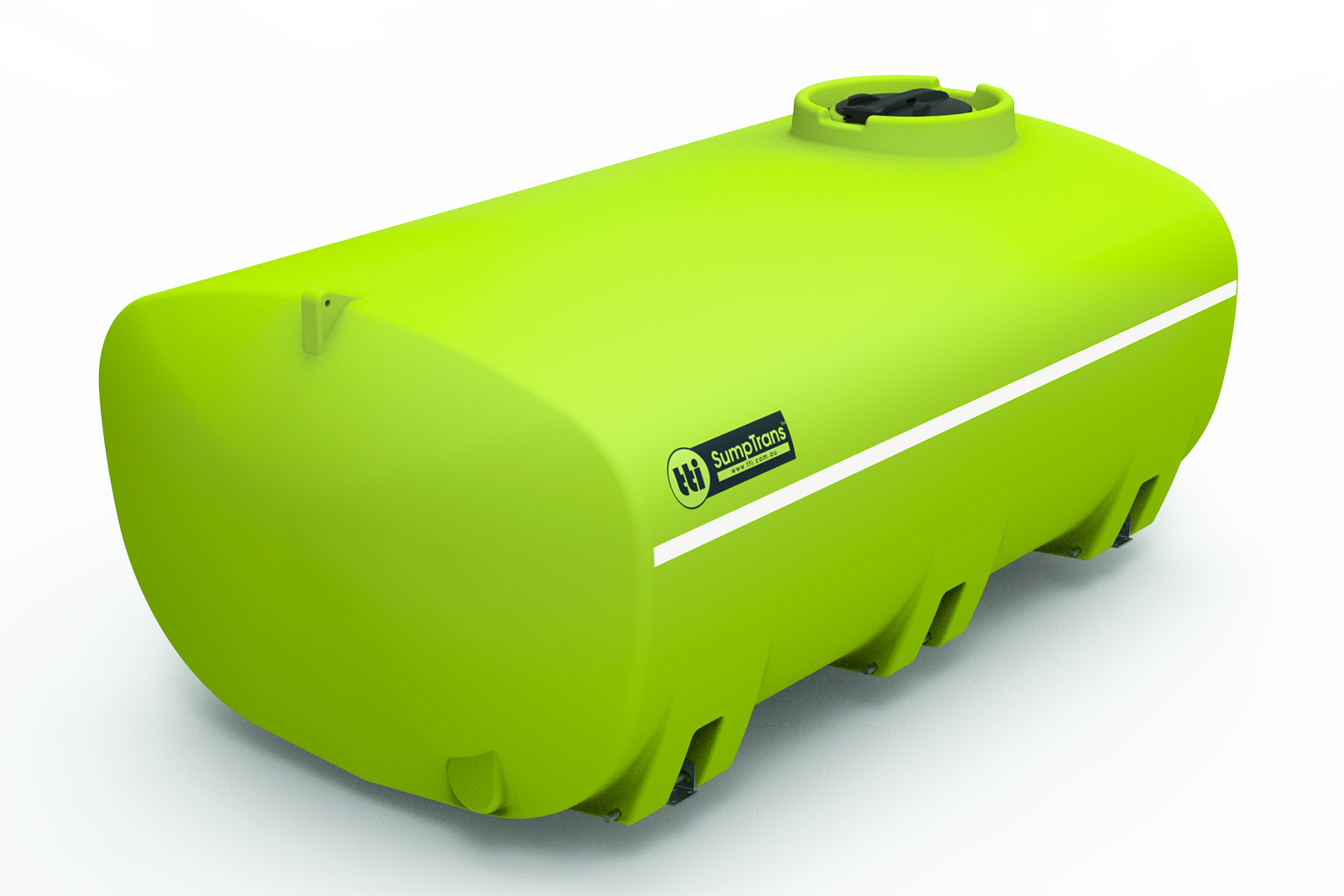 Integrated sump on end of the tank, for 100% drainage and decontamination