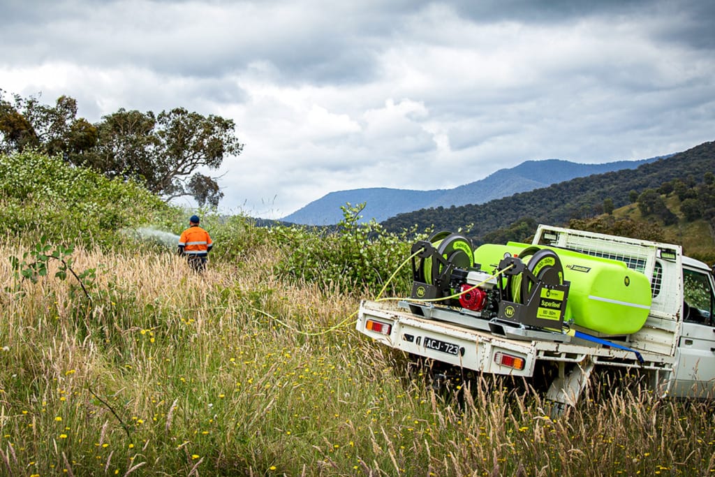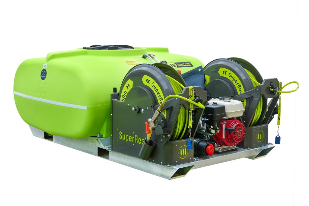 Ultra-tuff auto rewind SuperReel™ with NEW wireless remote for ultimate control in uneven terrain