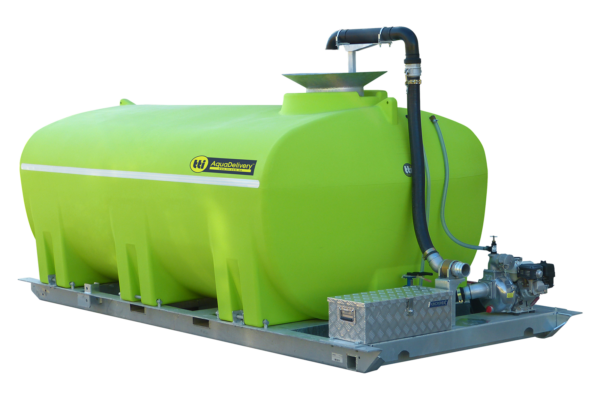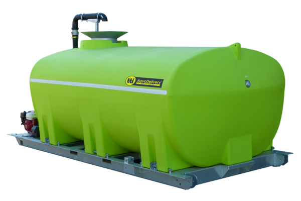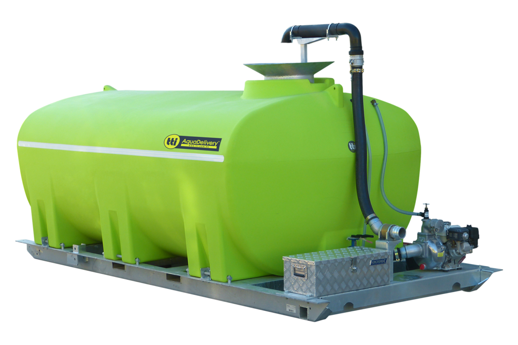 Heavy Duty water cartage tank on forkable steel frame with optional loading leg system