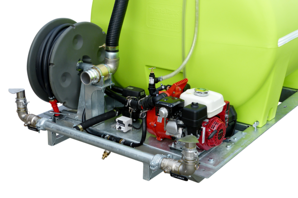 Rubber mounted to reduce vibration, a Genuine Honda GX200 Petrol Engine with Davey Twin Impeller Pump