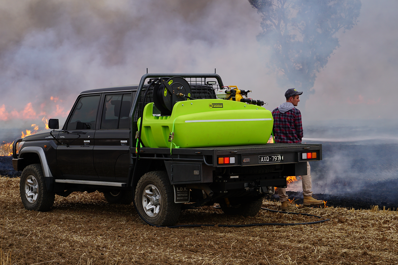 Complete with 36m x ¾” hose, safety locking catch and adjustable twist type fire fighting nozzle