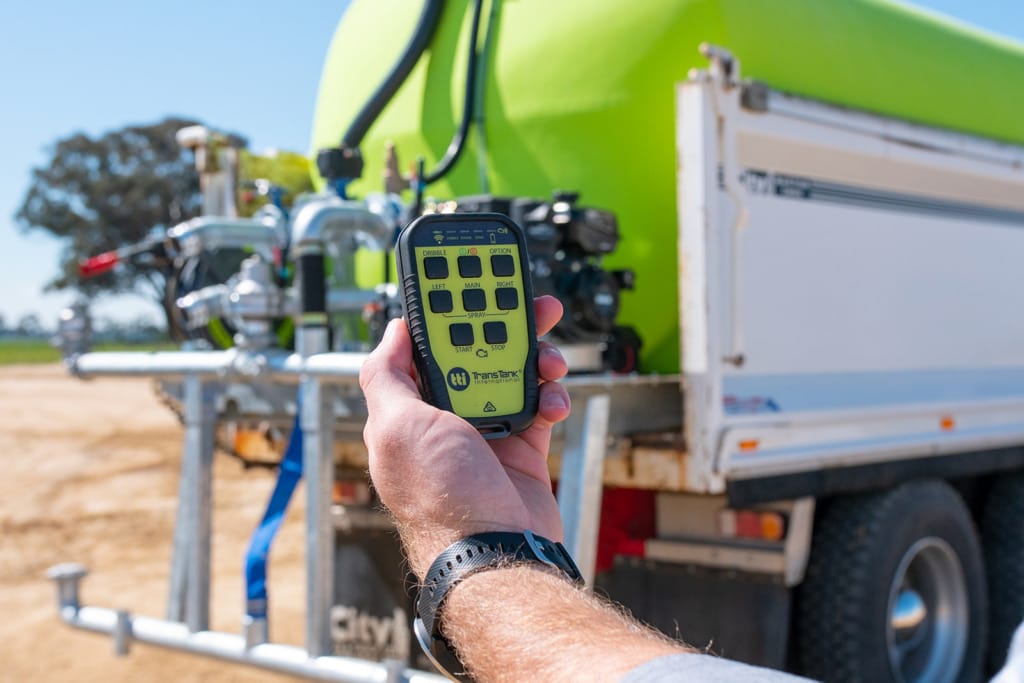 The wireless controller can turn on/off the motor, spray bar & dribble bar easily
