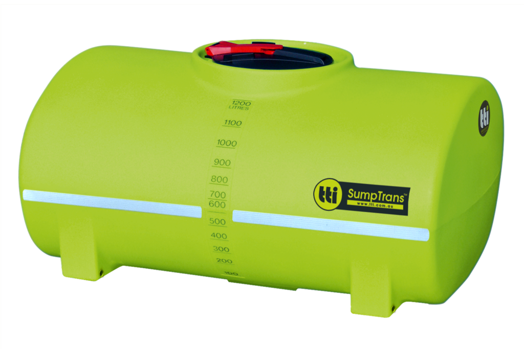 Fully drainable smooth interior tank with outlet fitted integral sump for complete drainage and decontamination