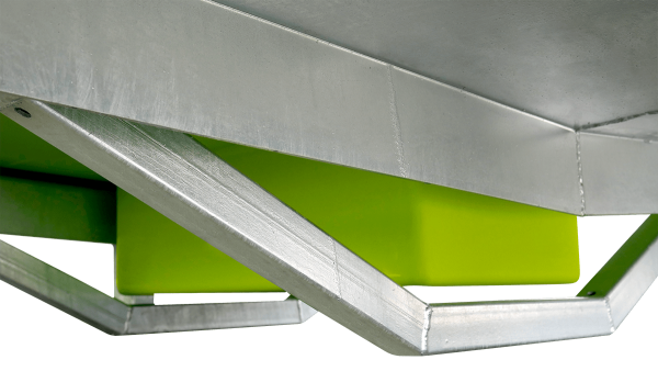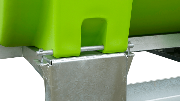 The optional fully galvanised steel frame is supplied with 4 pcs. galvanised mounting pins for easy and sure fit mounting