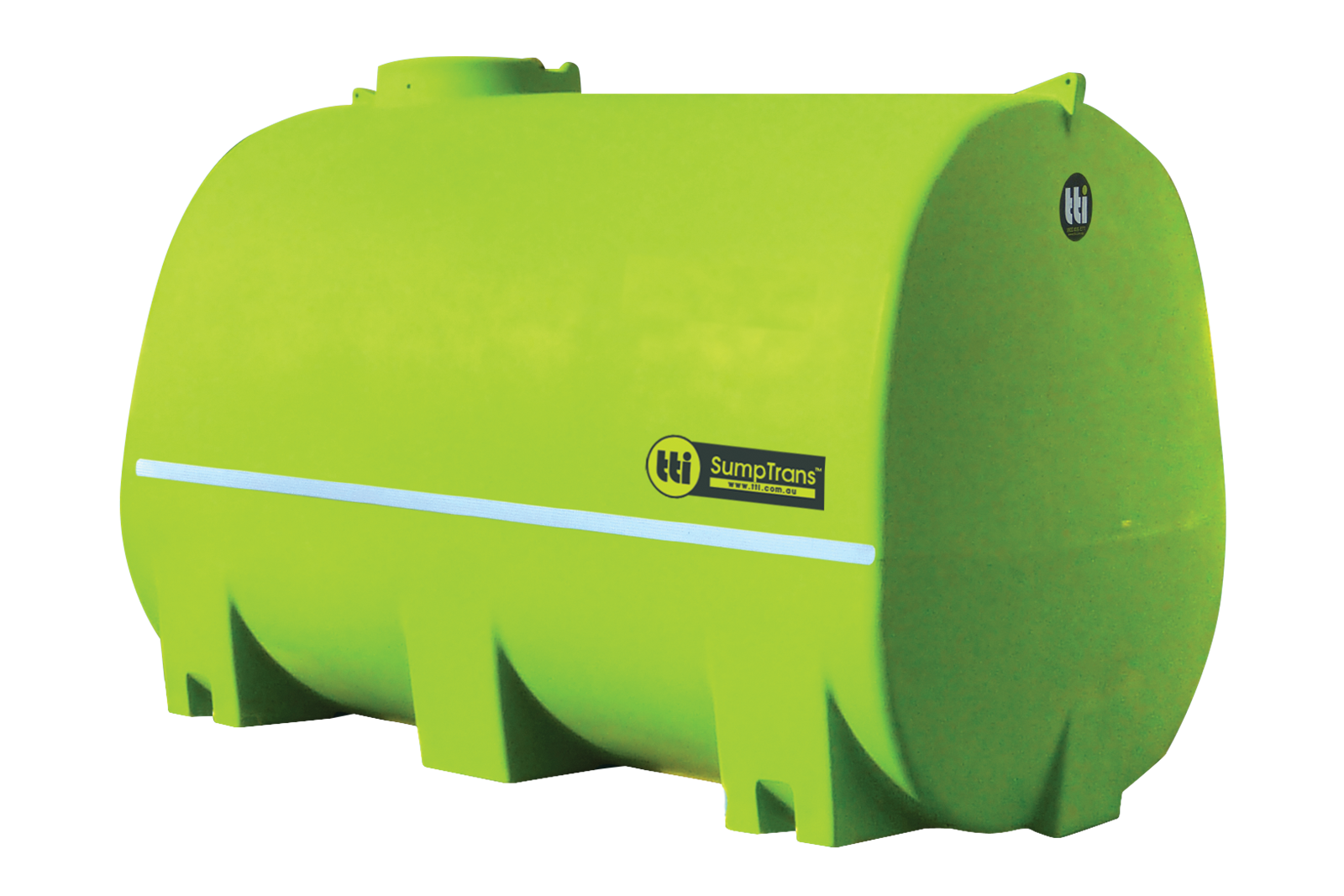 Fully drainable smooth interior tank with outlet fitted integral sump for complete drainage and decontamination