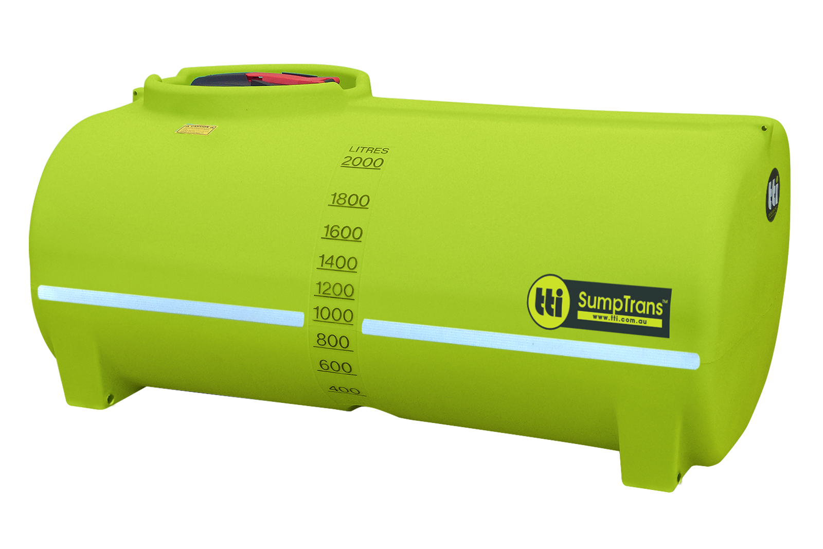 Fully drainable smooth interior tank with outlet fitted integral sump for complete drainage and decontamination