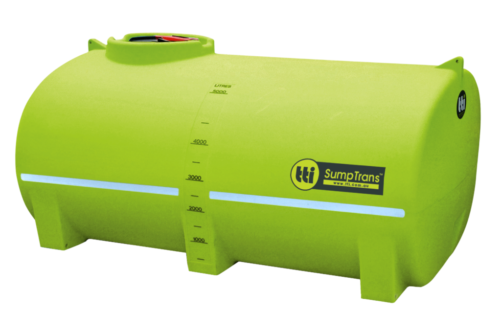 Fully drainable smooth interior tank with outlet fitted integral sump for complete drainage and decontamination