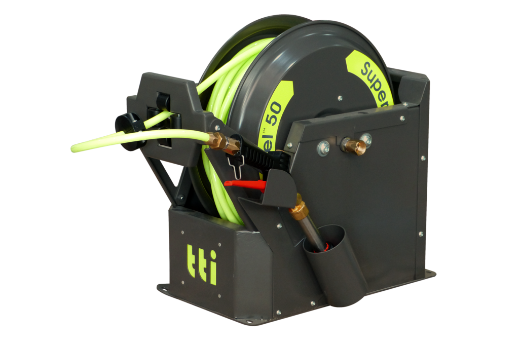 Yes, the SuperReel™ features convenient bolt-down mounting points, allowing it to be securely installed on trailers, trucks, or fixed setups. Ensure the mounting surface is stable and capable of supporting the weight of the reel and hose during operation.