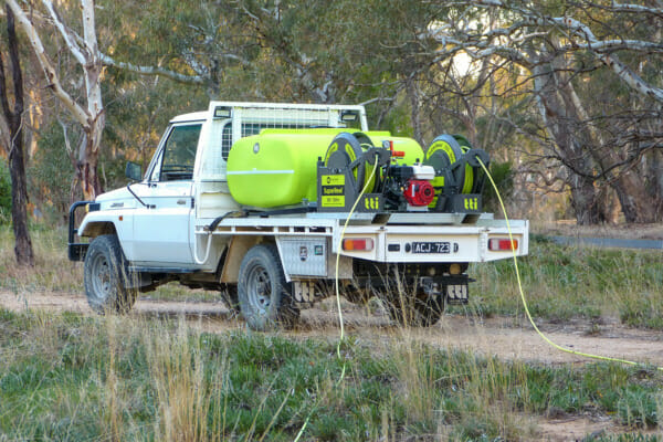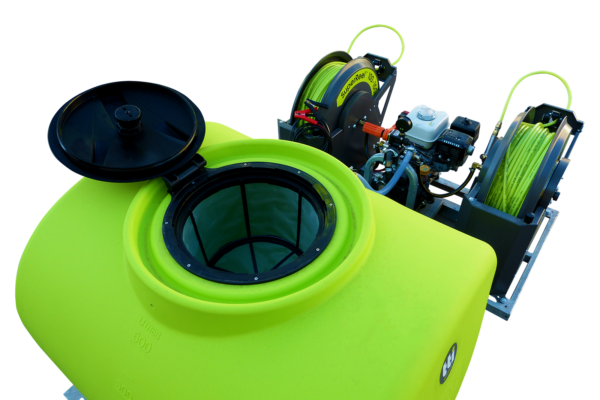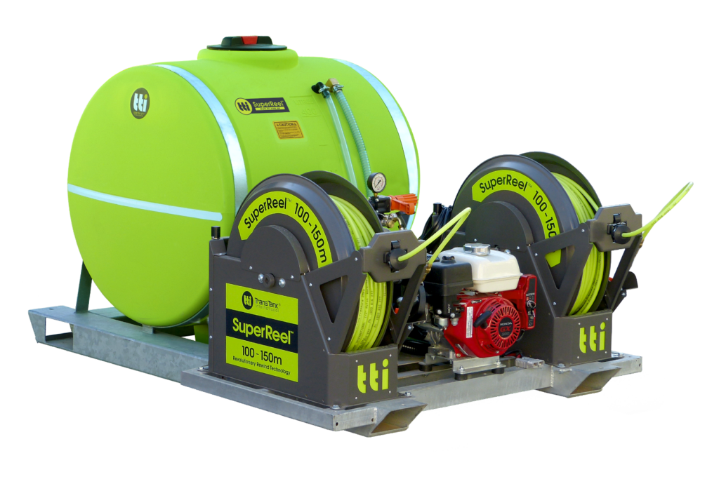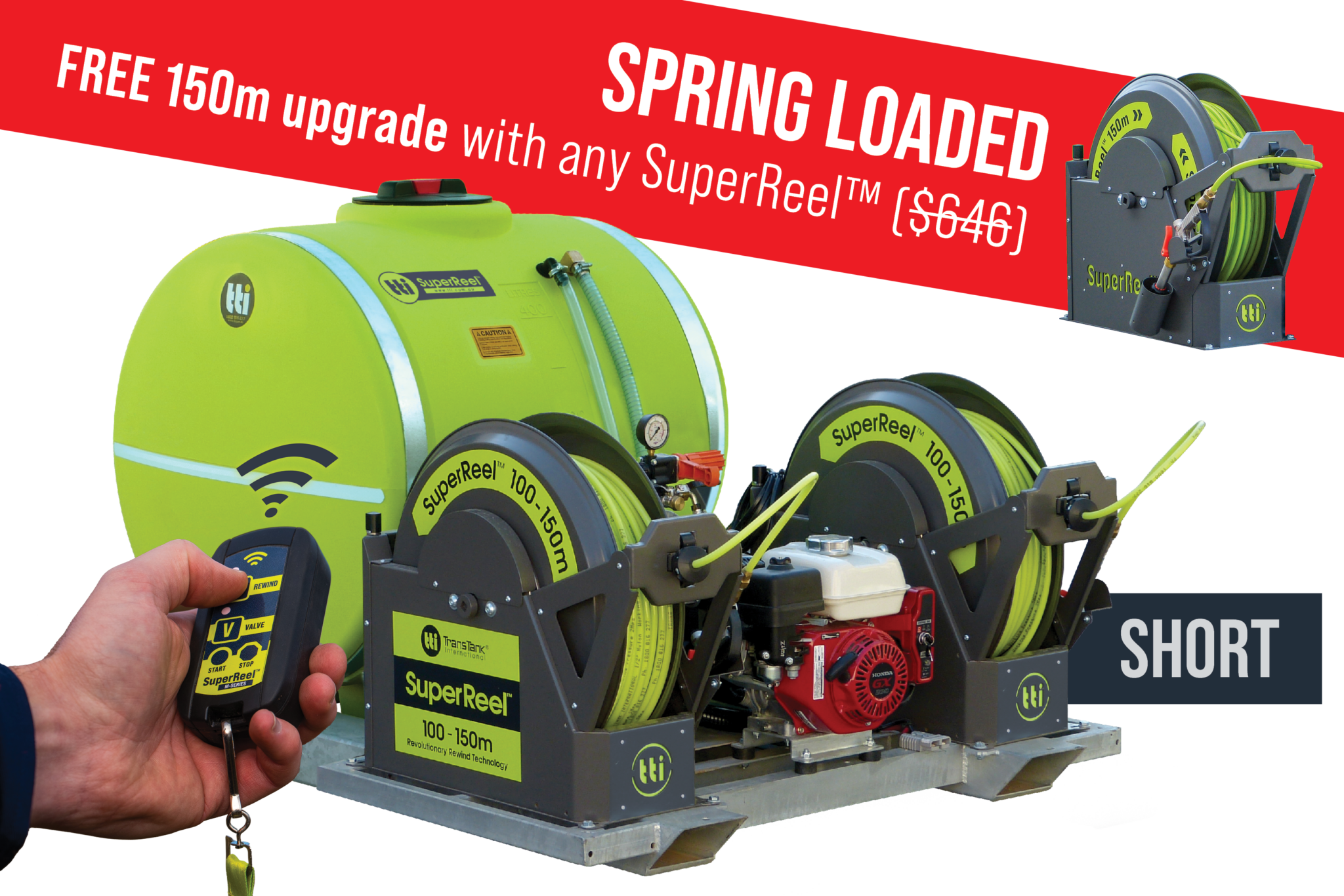 Ultra-tuff auto rewind SuperReel™ with NEW wireless remote for ultimate control in uneven terrain