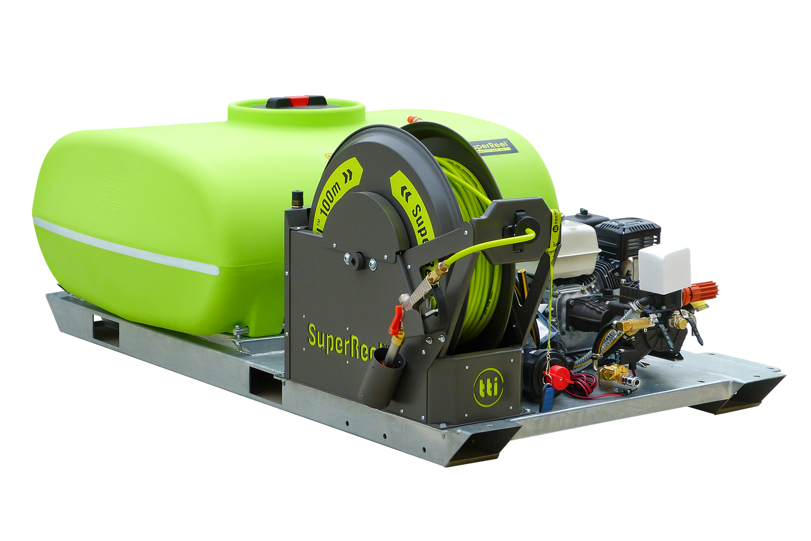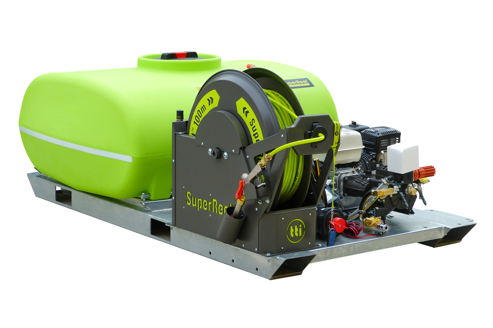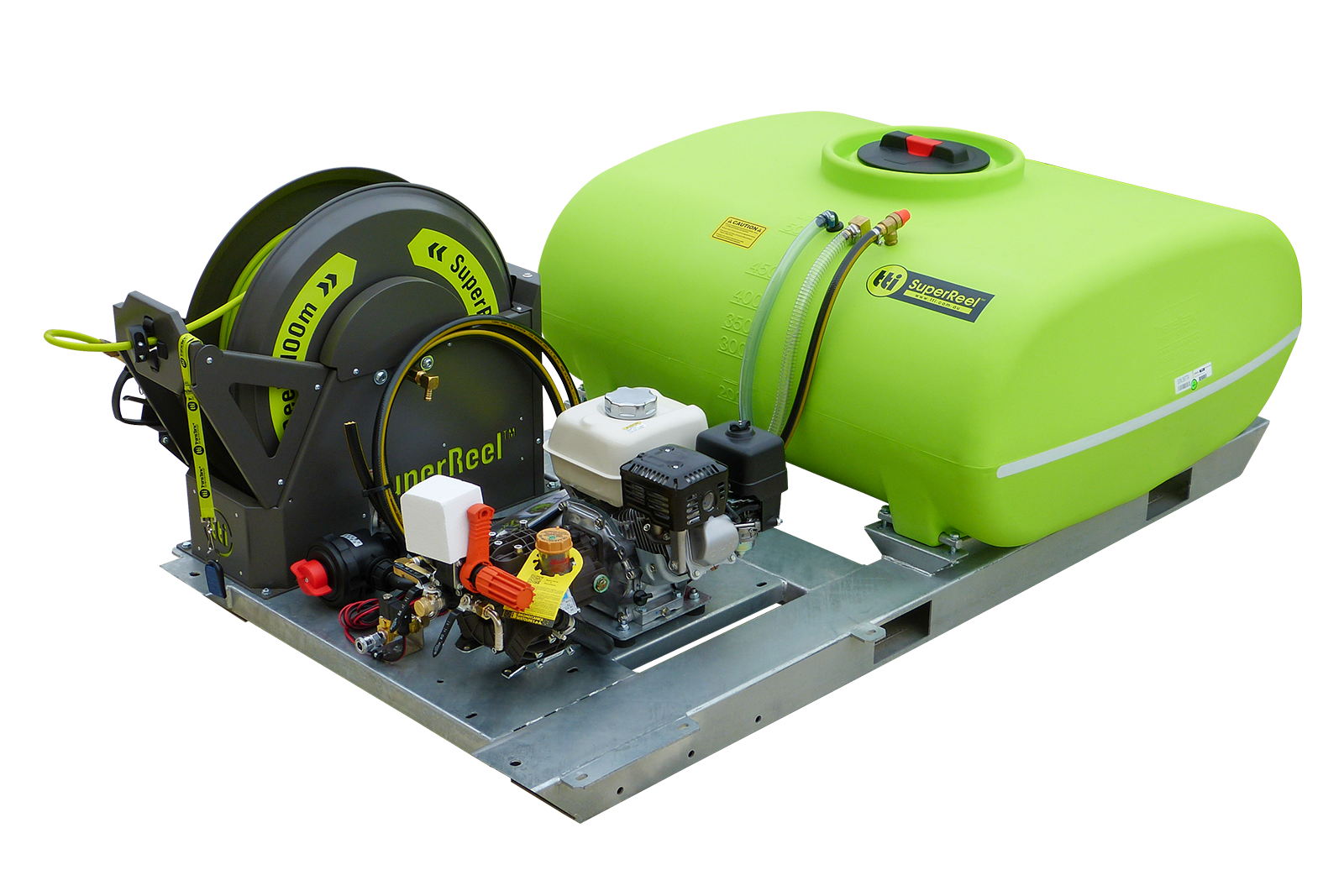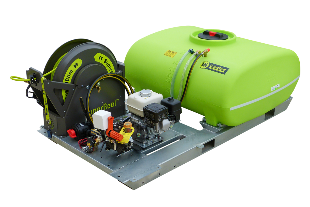 Ultra-tuff auto rewind SuperReel™ with NEW wireless remote for ultimate control in uneven terrain