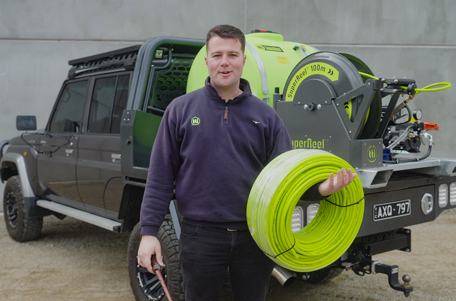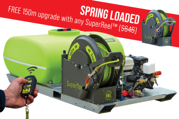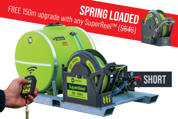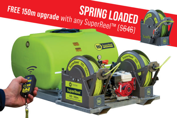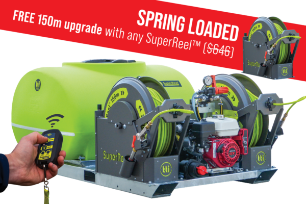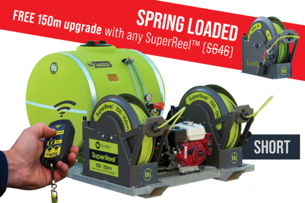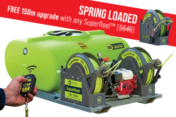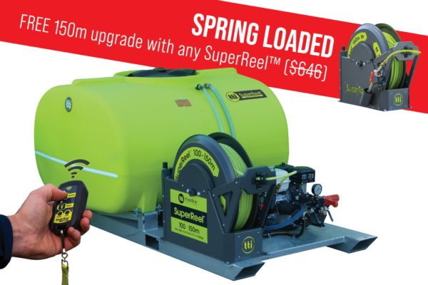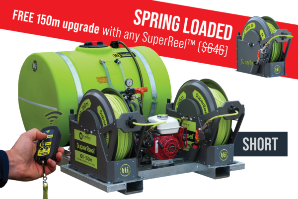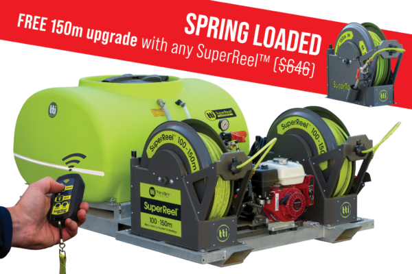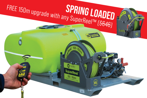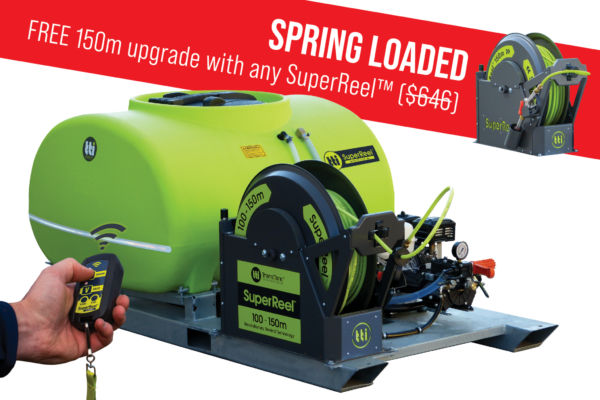 The SuperReel slip on field sprayer is the professionals proven choice. The heavy-duty electric rewind reel features a powerful 120w 12v motor and is capable of winding up to 200m of hose. The anti-link nylon hose, genuine Honda engine and Bertolini pump ensures this sprayer will perform in any conditions.