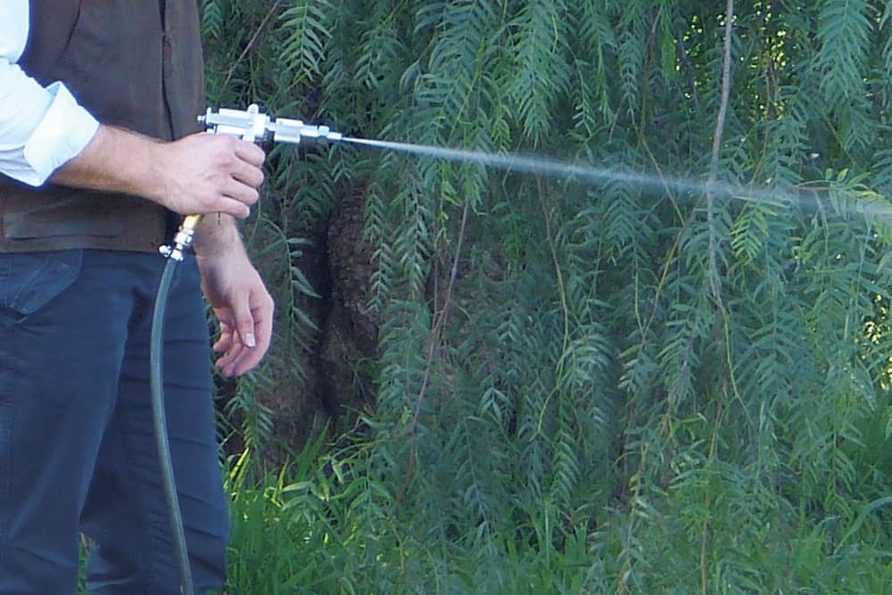 With 30m x 10mm spray hose and adjustable pistol grip spray gun
