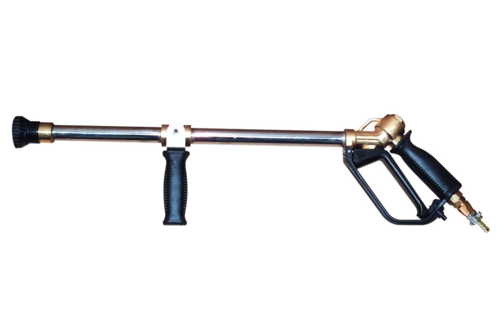 Top Gun long range spray gun, overall length 700mm, max pressure 60 bar 870 psi, 2.3mm nozzle, adjustable spray pattern, 1/2 inch swivel & 10mm hose tail