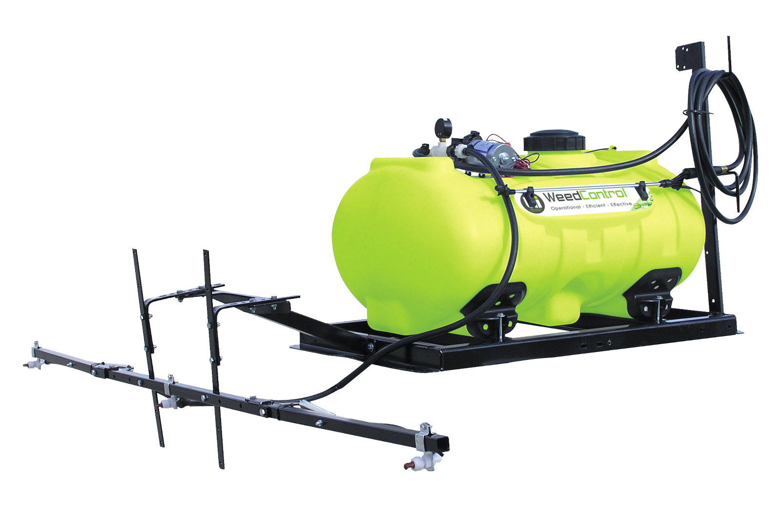 The sprayer supports many herbicides and pesticides. Use only chemicals that suit the tank and hose materials. Check the chemical label for safe use and contact us if you need compatibility guidance.